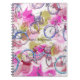 School assignment notebook in a tie dye background with bicycles. The words on the notebook can be changed.