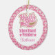Worlds best School Board Member keepsake ornament has a pink background edge with personalised name and makes a great gift idea for a woman or female School Board Member or the worlds greatest School Board Member.
