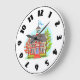 School buildings come in all styles. This design is a cool looking school building that is an old small cottage type. The building looks cute and has a bell tower at the top of the roof. This school building design looks great on this clock. Perfect for yourself or as a gift