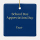 This ornament features a golden outline of a school bus. On the front bumper, you can personalise this with a name. The text is small. On the back it reads "School Bus Driver Appreciation Day" and then there's room to add the year. Or put whatever you want on the back. This makes a fun gift to give to your school bus driver for Christmas, or School Bus Driver Appreciation Day (4th Tuesday in April) or just as a gift anytime. Due to the design style, this can only be purchased on SQUARE ornaments only! Designed by Sheila Cicchi, Brownielocks.com. All Rights Reserved.