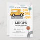 Cute Wheels on the Bus Themed invitation is perfect for any little guy!