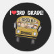 A yellow school bus filled with kids and text that reads "I (heart) 3rd Grade!" is featured on 3rd Grade teacher and student T-shirts, school tote bags, stickers, mousepads, magnets, cards, and more!