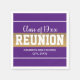 High school or Class reunion table napkins. Fun gold gradient band with bold white text. All text is customisable and can be changed for your own party needs. Gold and purple themed class reunion party table decor.