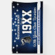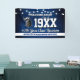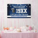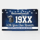 A fun reunion welcome banner featuring a string light pattern, your school colors of blue and white, your school mascot image and all the event details you personalize.