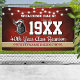 A fun reunion welcome banner featuring a string light pattern, your school colors of red and gold (or red and white with gold accents), your school mascot image and all the event details you personalize.