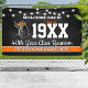 A fun reunion welcome banner featuring a string light pattern, your school colors of black and orange, your school mascot image and all the event details you personalize.
