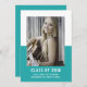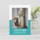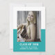School Colour Block Graduation Announcement with a classy and modern two-tone photo template design in teal. Add a photo and graduation details to customise. Background colour on back side of invite may be changed to complement the photo or to add a school colour.