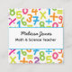This is personalised business card for math and science teacher or tutor featuring colourful hand drawn numbers pattern