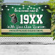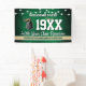 A fun reunion welcome banner featuring a string light pattern, your school colours of green and gold, your school mascot image and all the event details you personalise.