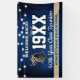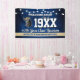 A fun reunion welcome banner featuring a string light pattern, your school colours of blue and gold, your school mascot image and all the event details you personalise.