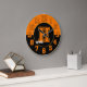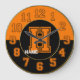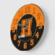 School Colours Round Wall Clock, Orange & Black Letter H-The background of this wall clock is a round circular frame, orange on top, black on the bottom trimmed with thin gold borders. In the centre is a cutout exposing a solid black background. The clock numbers are orange and black collegiate numbers trimmed with digital stitching. In the centre is a large over-sized monogram letter also trimmed out in digital stitching. There is one text area in place already for you to personalise. Feel free to write a first name, last name; school name or anything else you would like to write on your clock. You may also delete that text area if you would rather not have it. Find coordinating School Colours gifts & products in my monogram store. www.zazzle.com/zazzlemonogram