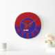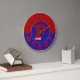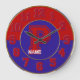School Colours Round Wall Clock, Red & Blue Letter P-The background of this wall clock is a round circular frame, red on top, blue on the bottom trimmed with thin gold borders. In the centre is a cutout exposing a solid blue background. The clock numbers are red and blue collegiate numbers trimmed with digital stitching. In the centre is a large over-sized monogram letter also trimmed out in digital stitching. There is one text area in place already for you to personalise. Feel free to write a first name, last name; school name or anything else you would like to write on your clock. You may also delete that text area if you would rather not have it. Find coordinating School Colours gifts & products in my monogram store. www.zazzle.com/zazzlemonogram