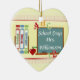 Cute school themed and personalised teacher ornament! This double sided ceramic heart ornament features a school/teacher theme with an artistic illustration of a classroom with chalkboard/blackboard, with books, an apple and ABC's and 123's too! The chalkboard area of the design reads "school days" and is ready for you to personalise with a name using our easy to use template area field on this page. Add the year to the back of the ornament as well! A wonderful addition to your ornament collection, and a great gift for family member or friend! For more teacher or school themed cards, invitations, accessories and gifts please visit our shop!