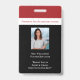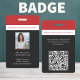 A professional employee staff badge for teachers, educators, staff of your school campus. Works for all school types private, public, pre-school, elementary,high school and college. Modern red white and black colour theme. Add employees photo, job title and school motto or creed. User has the option to add a QR code.