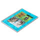 School notebook with four photo templates on the front. Blue flowers art, a hand-drawn pattern design, is the background for your child's favorite photos. Make school a little more fun when he, or she, can see familiar pictures of their family, playmates, or furry friends.