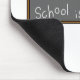 Three stick figure kids with big smiles and a school writing board that reads "School is Cool!" on back to school Tshirts, mugs, cards, stickers, buttons, and more that can be customised.