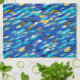 School of Fish, Dark Blue, White and Turquoise Tea Towel