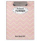 A functional but oh-so-stylish clipboard.  Designed exclusively for school psychologists.  This clipboard features a happy chevron design with added details in shades of pink and light green.  Sturdy, well made construction and the best clip around.  It will stand the test of time and continue to look stylish well into the future!  Be sure to customise with YOUR name at the bottom.