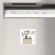 An adorable stick figure girl in the school science lab on a customisable magnet.