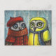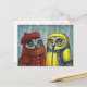 Two gorgeous owls - school sweethearts, cute romantic scene in a birch wood. From original oil pastel painting by Tanya Bond