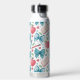 The bottle looks even better in real life. The ice cubes I put in lasts all day! I have my bottle with me all the time. It's summer and having something cold to drink feels amazing. With this bottle I always have something super cold. I have only tried the hot drink once and it lasted a long time as well. The color blue is a navy blue and the white printed on it is vibrant. It printed perfectly. I love my personalized smile water bottle.