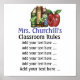 This has been a big hit with my teacher friends and customers along with my other teacher posters, so I'm offering it several different ways for the new school year. Simply type over each line to add your rules; yet, if you need any help at all, please contact me ! I also have 2 popular versions on my main page - from another of my Zazzle stores. Change the border colour if you wish. Eliminate / decrease the size of some of the text. Vary the colours per rule. Have fun with it. That's half the fun of Zazzle ! If your school is interested in purchasing this as rules for the school, please tell your administrators that Zazzle offers generous quantity discounts, and many of my customers are happy to use that daily. Thank you so much, and please pass my store address on to friends since I use the profits to purchase art supplies for my own art students ... ; ) Here's to a great school year (and may your rules work better for you than mine do for me ... Honestly, I am just not a good disciplinarian; yet, my classes had 36 per last year ! YOW. We had fun though, and I didn't add too many grey hairs !) Thank YOU for being here, and please visit often, Sharon Rhea Ford (NBCT - Art) www.zazzle.com/sharonrhea* (Check out my School - Teacher Section for more and matching products also !)