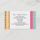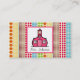 A teacher business card featuring the logo of The Pink Schoolhouse inside a square with pink trim on front. Background on front and back consists of rows of polka dots in various colours and sizes. Personalise the text on front and back.