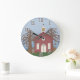 This schoolhouse teacher wall clock features a schoolhouse scene surrounded by trees and a blue sky. Nice large whimsical brown numerals. School classroom or homeschool room decorating gift designed with a teacher and students in mind. Great gift for a teacher. Large round shape only available with this design. Large round clock is shown.
