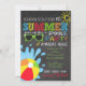 School's Out for the Summer Chalkboard Party Invite in bright blue, orange, green, red and yellow.