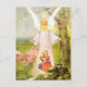 Altes Bild. Mädchen mit Blumen. Drohende Schlange ist Kreuzotter. Engel hilft