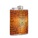 The flask itself is fine. It’s a cheap flask, obviously bought in bulk, however am prepared to overlook that. Given that it is a personalized item, I would have liked to have seen gift boxing instead of the generic packaging. Terrible printing, and/or quality. It’s a cheap, tacky vinyl. It is not cut straight and is also applied in a way that it is overhanging the bottom, causing the glue to catch on items and it will eventually roll and tear, damaging the wrap.