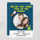 Let people know the wedding is coming with this retro sci fi date the date card with a rocket ship and green alien.