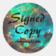 Create your own stickers "autographed copy" stickers that also promote your domain name for your author site. The space image is from NASA/Hubble program, and is a lovely aqua green image of the Star Cluster NGC 2074 in the Large Magellanic Cloud. You can move the image around for different colours. The font size can easily be changed to fit any name.