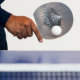 Consisting of sharp-tipped metallic spikes, this mysterious science fiction structure at sea also has a reflective blue sphere.