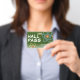 Ombre white and dark green school hall pass badge for science teachers. Cool colourful atom molecules design with customisable white text. Horizontal layout and lanyard attachment. Personalise it by adding your last name and classroom number. Great for back to school for elementary school teachers.