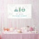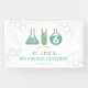 This cool "birthday experiment" boy's science birthday party welcome banner features a white background with flasks, and a test tube in green. Personalise for your needs. You can find matching products at my store.