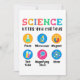 Playful science artwork made for curious kids and young students. Cute symbols like flask, microscope, magnet, test tube, magnifying glass and atom help children explore science in a fun and easy way. Ideal for school, learning and discovery.