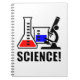 A product that shows excitement for science. The design shows a beaker with a blue chemical, a flask with a red liquid. A microscope sits to the right.