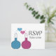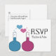 So fun and nerdy is this Science of Love Wedding RSVP Postcard which features a pair of beakers, one in blue and the other in fuchsia, with cute heart bubbles. This quirky and unique design is perfect for that nerdy couple wanting something memorable that matches their quirky personalities! Easy to customise, simply add the details of your wedding day in the spaces provided. Click on the "Customise It" button to find additional personalisation options.