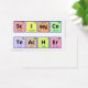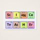 Business Card. The words "Science Teacher" are spelled out using symbols from the periodic table of elements. The element Neon (Ne) was turned upside down in order to get the required letters for the word "science".