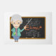 Cool and funny design featuring a science teacher holding a Chemistry flask and a stick pointing the blackboard with the EMC2 formula and various other formulas.