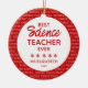 Personalised teacher appreciation Christmas ornament featuring the words "best science teacher ever" in a Merry Christmas script frame design. Can be customised according to the subject, their name, and the year.