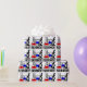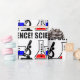 A product that shows excitement for science. The design shows a beaker with a blue chemical, a flask with a red liquid. A microscope sits to the right.