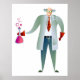 Illustration of a mad scientist stood posing in his white overall wearing his protective gloves whilst conducting an experiment. From my occupations series. Image available on various gifts and products.