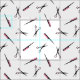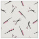 Fabric white with a modern pattern of scissors and combs in black and hot pink.