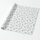 White wrapping paper with a pattern of combs and scissors in black and turquoise.