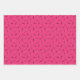 Hair stylist themed wrapping paper sheets featuring three patterns with scissors and combs in different combinations of white, hot pink, and black.