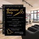 Black and gold graduation party for your beauty school graduate's celebration. Front features golden scissors and hairpins along with the text, "Graduation Party" as part of the design, and the back features a black and gold background with confetti polka dots in varying sizes. Simply personalize the front with your party details and add to cart. Design by Holiday Hearts Designs (rights reserved).