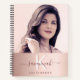 A faux rose gold, pink metallic looking background. Personalise and add your own photo, a name, monogram letter and a title/year. The name is written in dark rose gold with a large modern hand lettered style script with swashes. Can be used as a sketchbook, for journalling, taking notes, to-do lists.