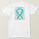 Scleroderma awareness uses a teal ribbon for its cause awareness. The shirt art features a teal awareness ribbon angel painting. The awareness angel t-shirt message notes "Scleroderma Awareness". There is a large image on the back of the shirt and a smaller picture on the front of the shirt. The teal awareness angel ribbon art apparel can be customised with personalised messages to make great cause event clothing for fundraiser shirts, group team walk shirts, awareness t-shirt gifts, or other special cause events occasions for merchandise to help increase this cause's awareness in public for society's help in creating help & cause change.
